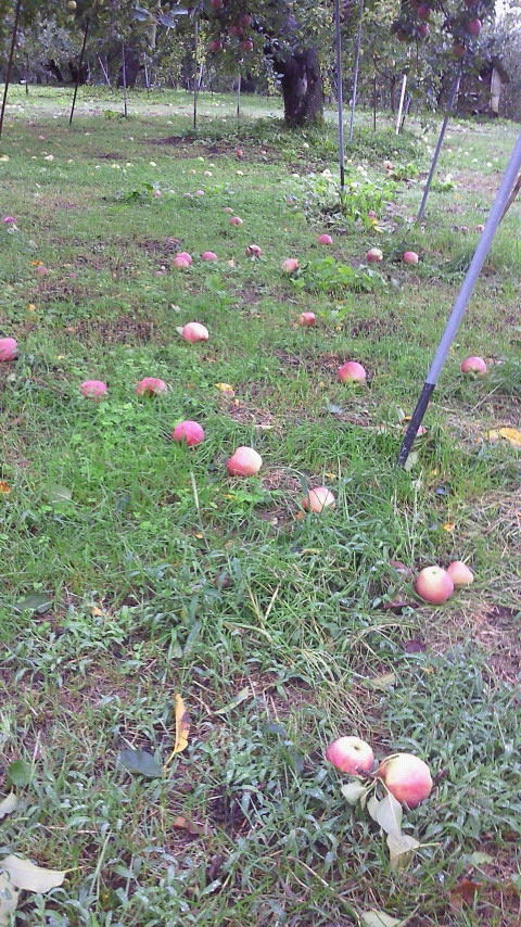 今日は朝からりんご拾い、梨拾いです。