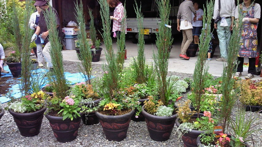 同じ鉢で似たような花なのに植え方にそれぞれ個性があらわれてますねえ...