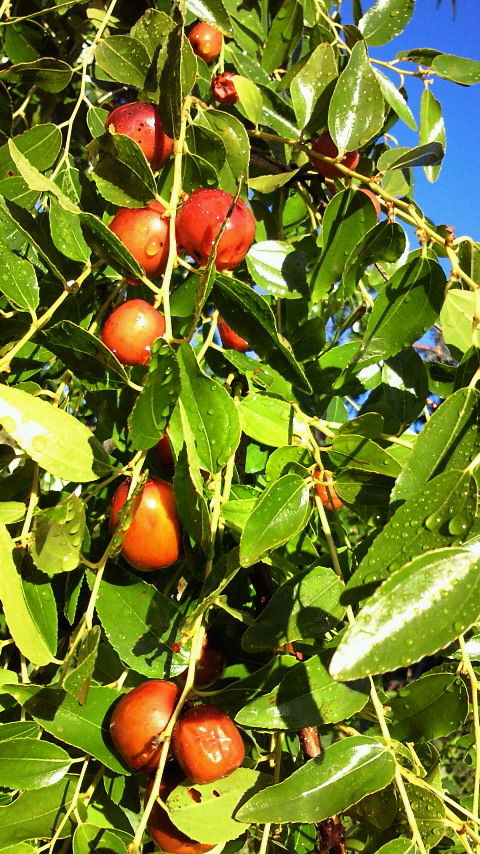 なつめましのワイナリー「シャトーましの」の庭のナツメの実が茶色に色づいてきました。