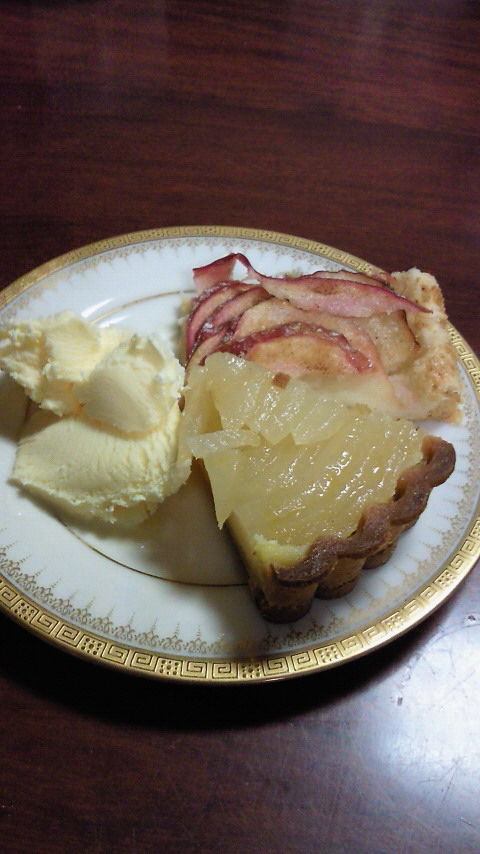 一品はお客様(お料理教室の先生なんですって)が我が家の紅玉で作って下さったアップルパイです。