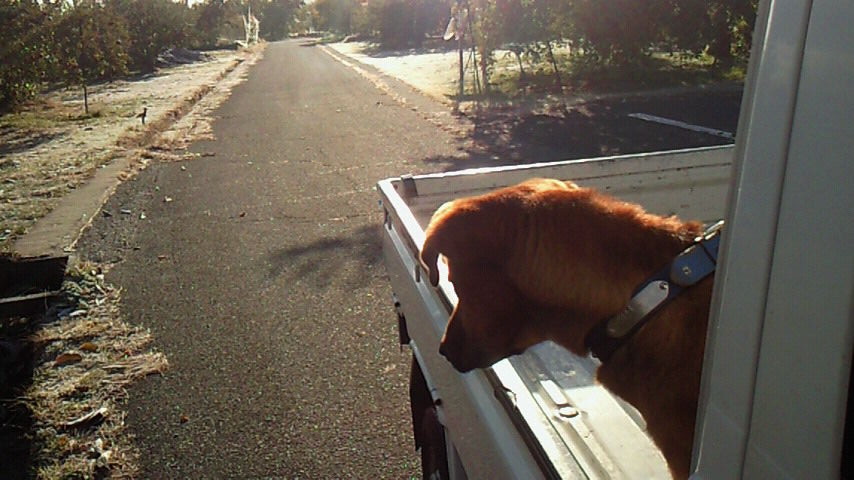 毎朝お父さんの軽トラに乗ってパトロールに行きます。
