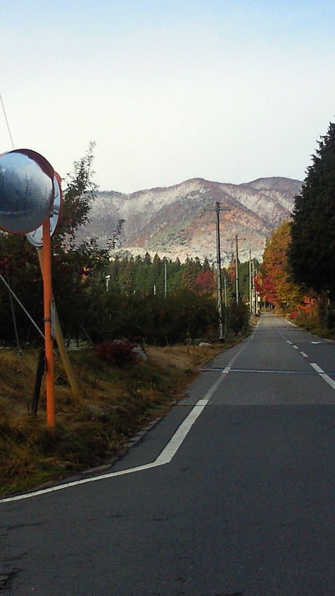 この道路の右側のりんご畑、我が家の「アルプス畑」ですが、最近サルの群れが柵や網をかいくぐって、りんごを食べに来ています。