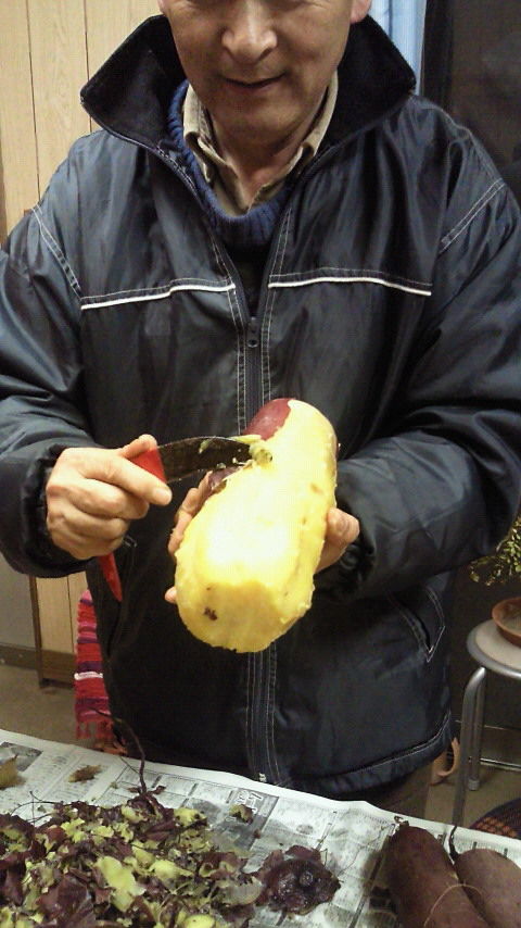 洗って、釜で蒸して、皮をむき、切って干す。といった一連の作業はさんざん頭の中でシュミレーションしてきたせいか、割合スムーズにできました。