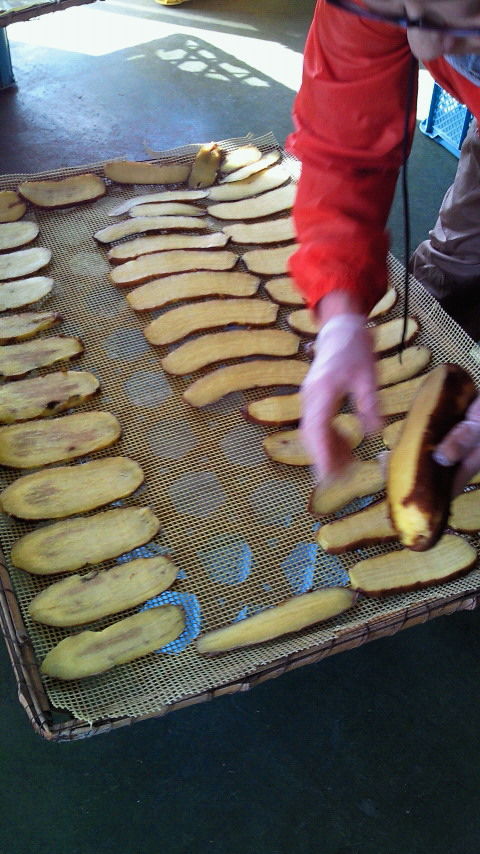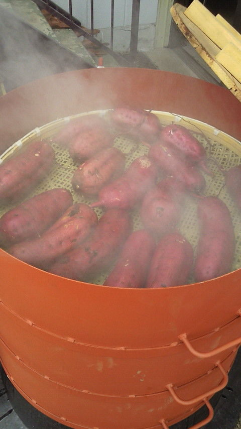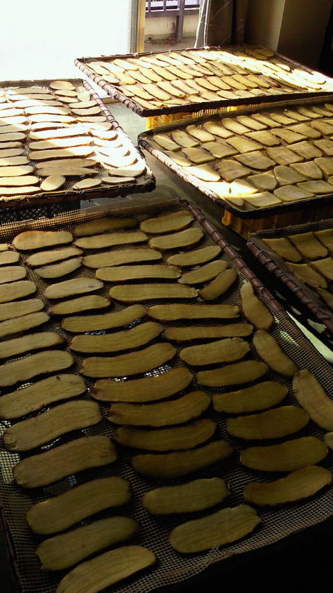 一釜目「クイックスイート」はうまくいってとても美味しい干し芋ができあがったのですが、二釜目「紅はるか」は火力不足でゴジゴジ、三釜目「玉豊」は蒸し過ぎと干し過ぎでカチカチ...となかなかうまくいきません