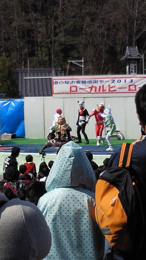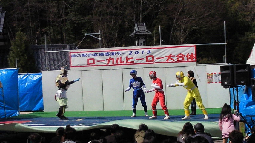 昨日の日曜日、飯田市の南、"峰竜太のふるさと"で有名な下條村の道の駅「そばの城」に全国各地からローカルヒーローが集結し「ローカルヒーロー大合体」と銘打ってショーがありました。
