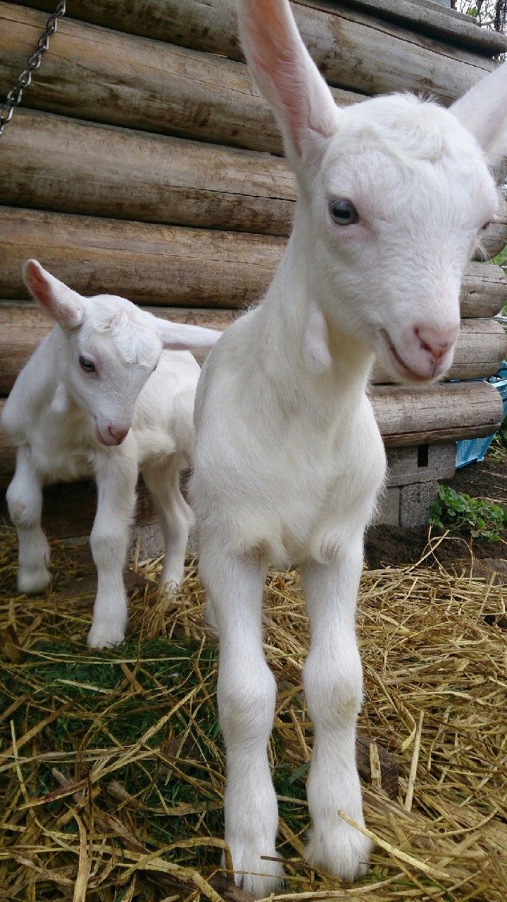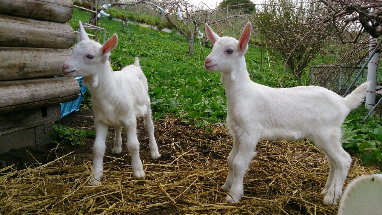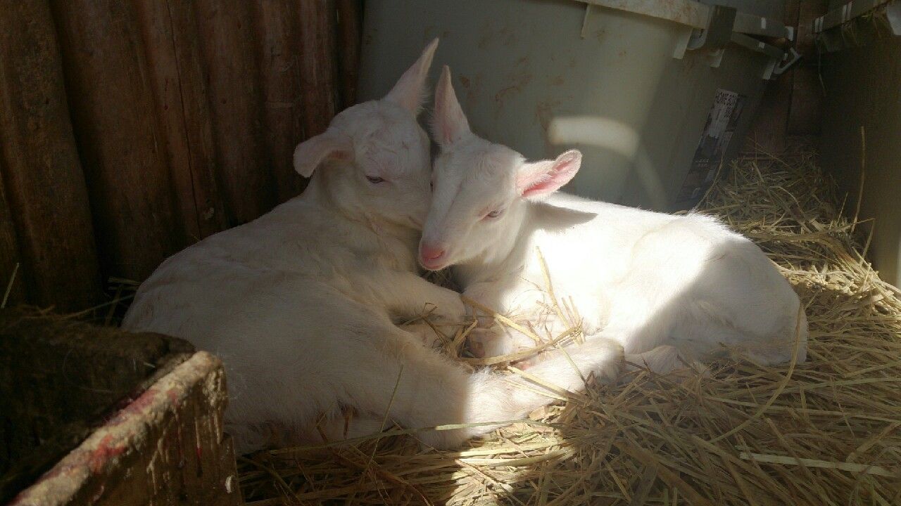うまれて十日あまり、かわいい盛りのちびヤギたちです。