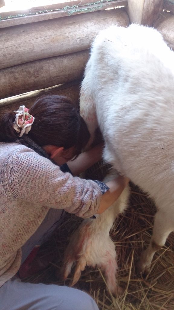 一人付いてたちーちゃんが、たんぽぽのいきみにあわせて子やぎの足を引っ張りようやく誕生!大きな男の子!頭が大きくてでられなかったようです。