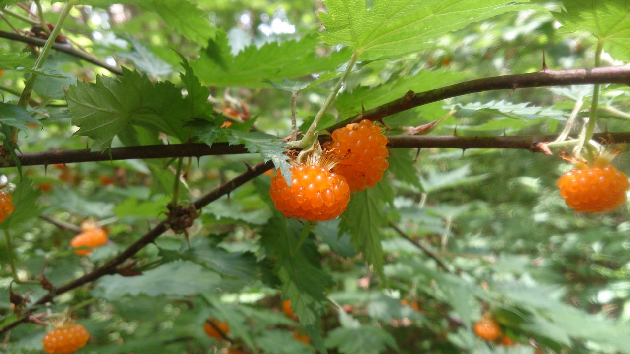 DSC_0026週末帰省した末娘と一緒に裏山に木苺取りに行きました。