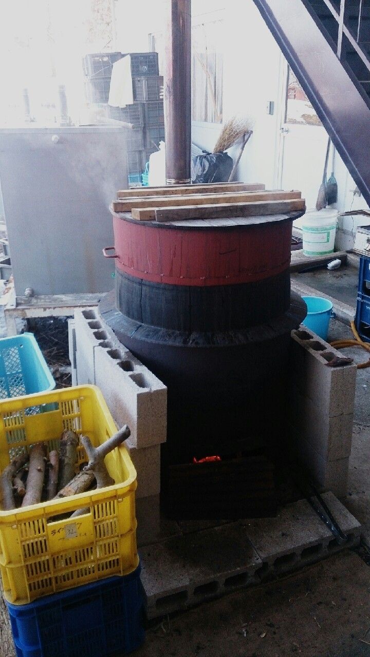 イモを蒸かす鉄釜今年一月から毎日作ってる干し芋。