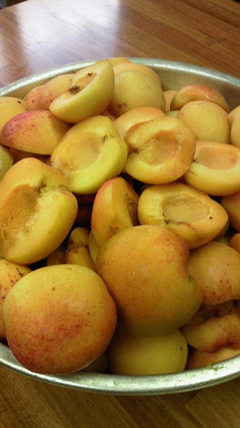 去年はちょっとしかならなかったアンズですが、今年は2コンテナも採れたので、きょうはそのうち10キロを2回に分けてジャムにしました。