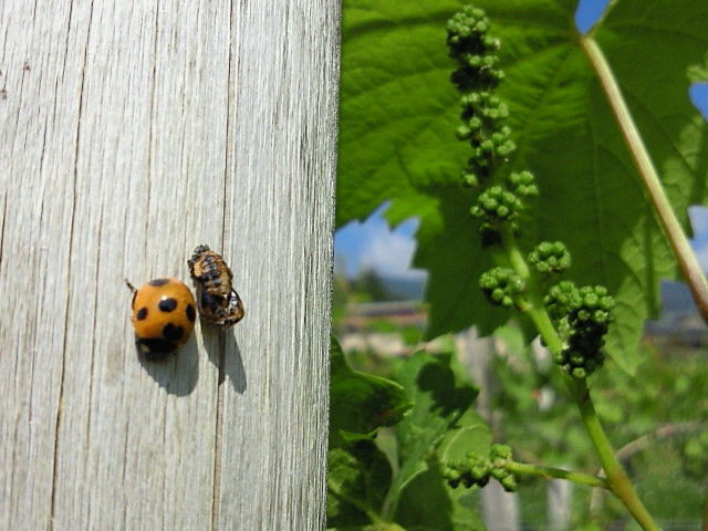 ブドウ畑で仕事中のきっつぁんが見つけたテントウムシです。