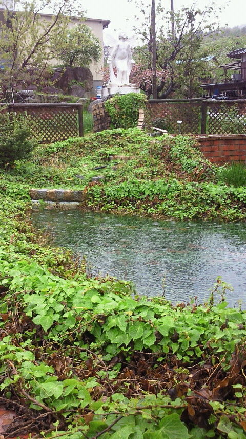 池でカエルがけろけろ昨日から雨が降っています。今週は火曜日から金曜日までの予報です。