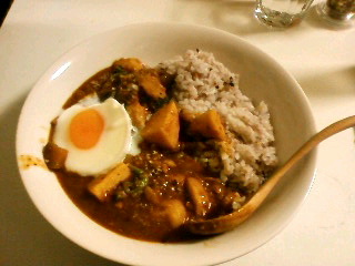 今日のは里芋と茄子と冷凍庫に眠っていた栗とピーナッツとブロッコリーと挽肉のカレー。