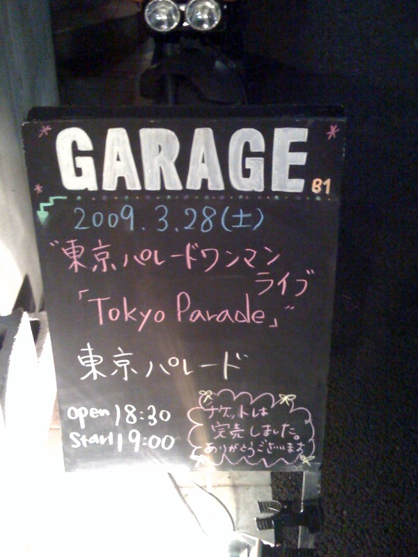 先日、東京パレードの活動休止ライブを下北沢ガレージに見に行った。