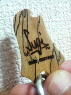 写真は今日いただいたもので希少材であるスポルテッドメイプルという木材を使ったSUGIキーホルダー。