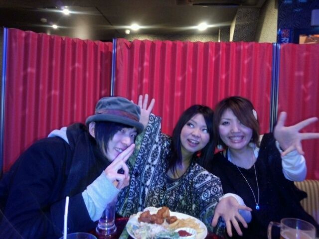 昨日の打ち上げ写メで私の後ろで物真似しています!!!!おんぷ