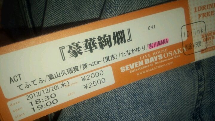 ワンマンのチケットポスター持ってくし、11月9日のチケット持ってくし、もっとゆうと12月20日のスペシャルなライブのチケットも持ってくので、声かけてねー(*'▽'*)