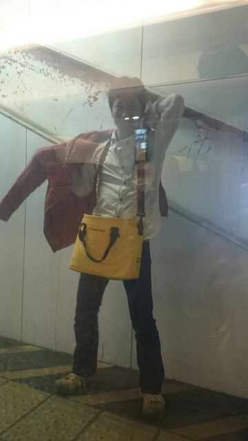 福井から大阪まで電車で帰る道中、先に京都で降りた野村さんが、見送ってくれてるの図。
