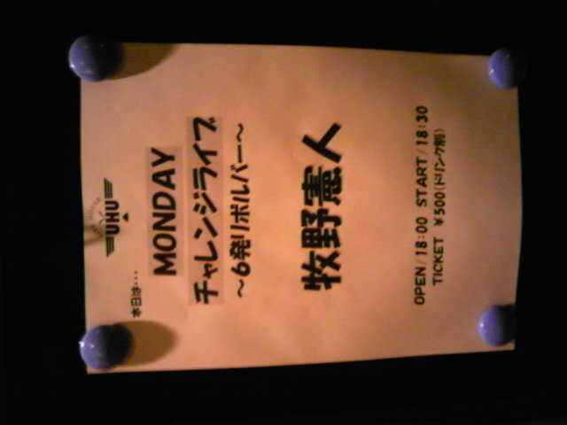 実は今日の静岡UHUライブは、『牧野憲人(仮)ワンマンライブ』になります!