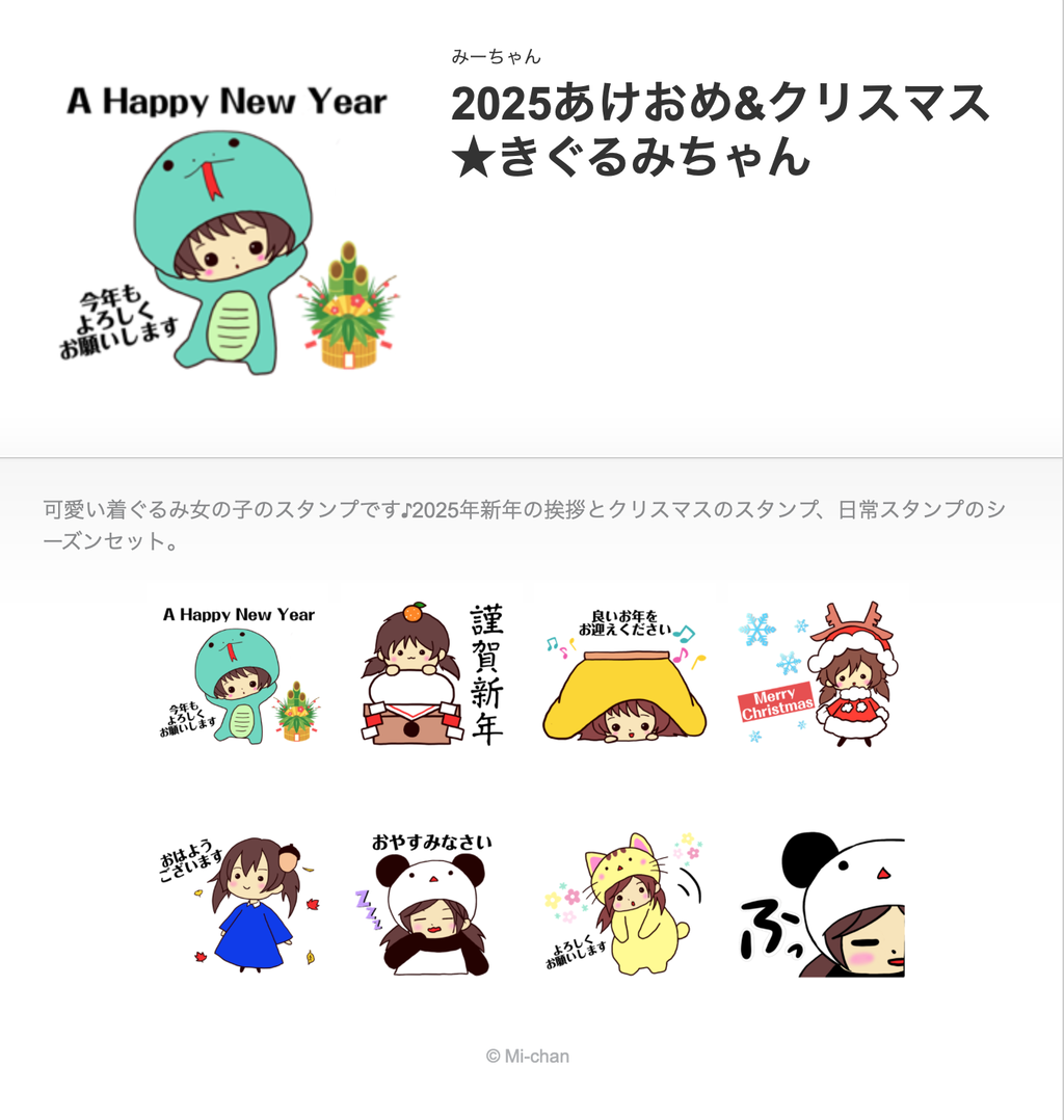 今年も年末年始のご挨拶、クリスマス、プラス日常挨拶のLINEスタンプを作りました