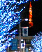 並木道の薄青のイルミの先には、東京タワー(* ?ー`*人)。