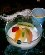 杏仁豆腐を頼んだら想像よりも立派な杏仁豆腐が登場(* ?ー`*人)。マンゴーソースをかけて食べたのですが、まわりに氷があってひんやりしてておいしかったですd(-_-)やはり食は見た目も重要ですよね!幸せな気分になりましたv(≧▼≦)v