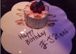 デザートを食べ終わったと思ったら静かな店内に大音量でドリカムのHAPPY BIRTHDAYの歌が(すいません曲名がわからなくって)