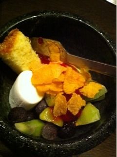 石鍋にアイスとフルーツが入ってて冷え冷えo( ?∇ ?*o)(o* ?∇ ?)o〜♪