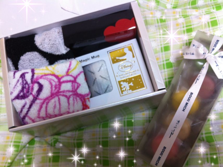 ディズニーのタオルとマグカップとカップの蓋とマカロンまで皆さんから頂きました