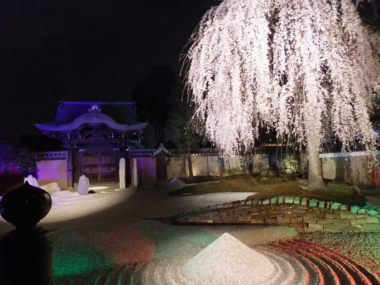 ライトアップが変化するので、写真を撮ろうとすると全部真っ暗になったり、凄いカラフルな電飾