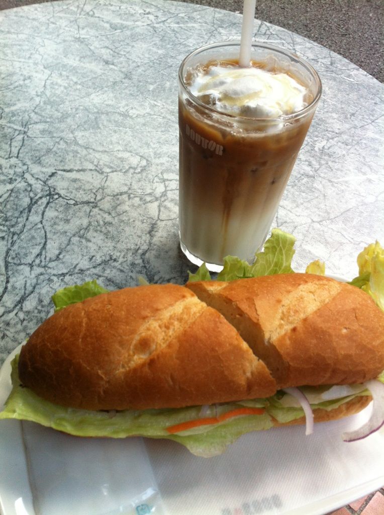 生ハムとアボカドのサンドを食べながら、オフィス街でOL気分を味わいました♪(= ?∀`)人( ?∀`=)