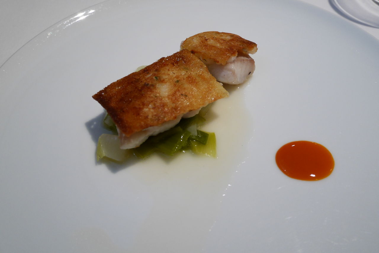 ↑お魚料理。鮎魚女。上は皮じゃないですよ〜。ホタテなどが入った焼き物が覆っているのです
