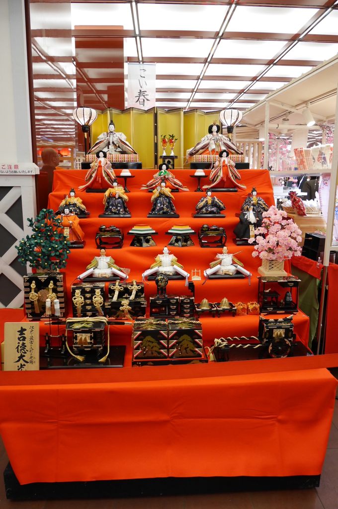 新しい歌舞伎座は地下鉄の駅から直ぐにお土産物屋さんが多くあるフロアーに出てお雛様も既に飾られていましたよ♪
