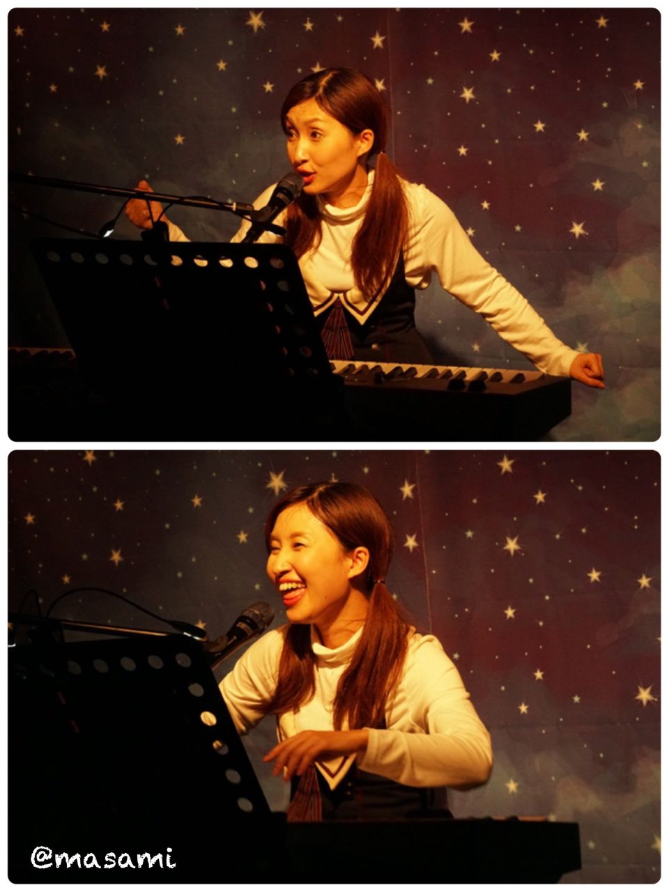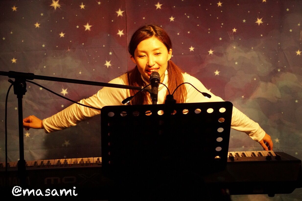 小山さんはシンセを弾き語りします。