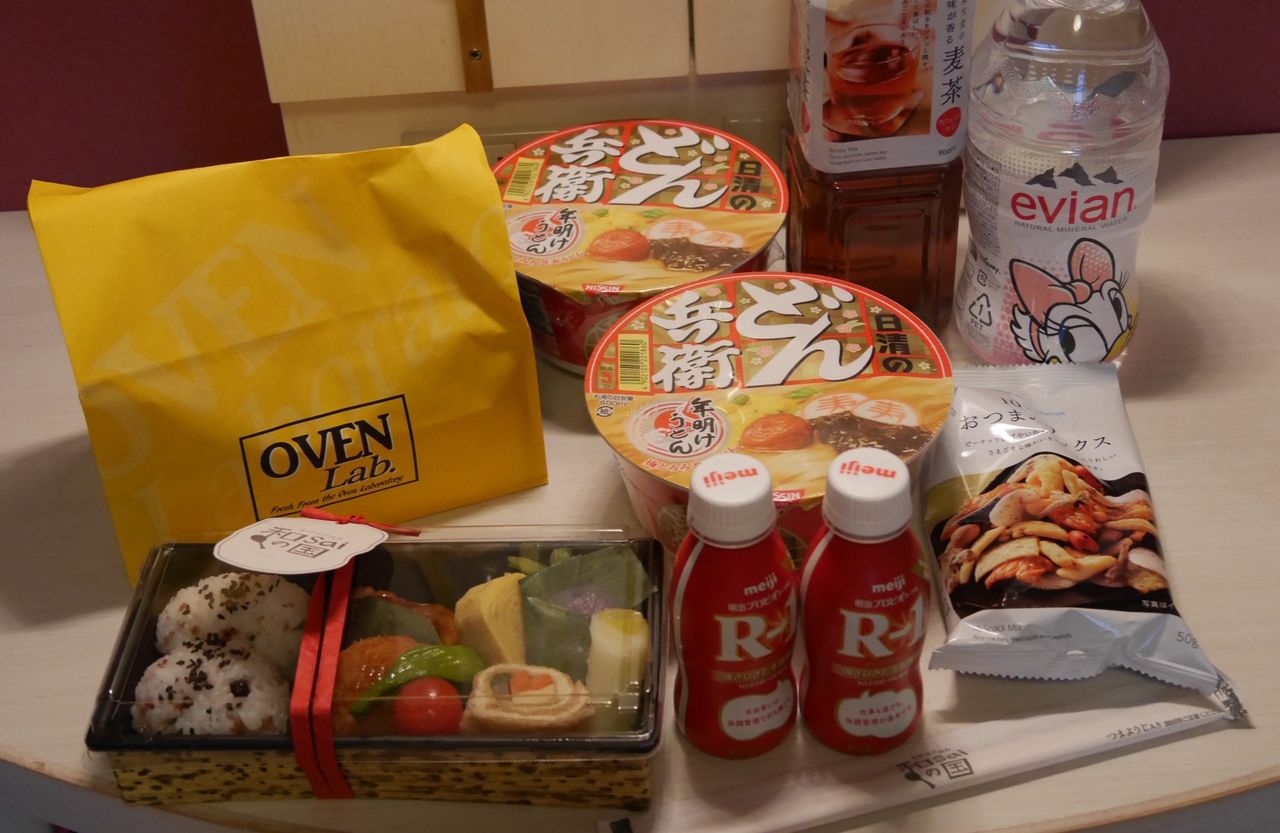こんな風に外食出来ると思ってなくて、大晦日に大阪に到着して食料買い込んだ写真がコチラwww