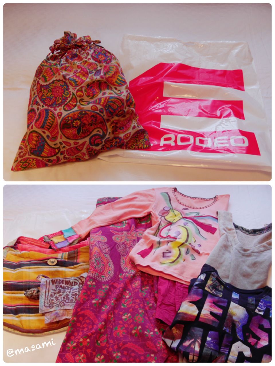 巻きスカートとジャンパースカート、パンツ、Tシャツ2着に今年はショルダーBAGに髪飾りまではいいてるじゃないですかΣヾ( ?0 ?;ノ