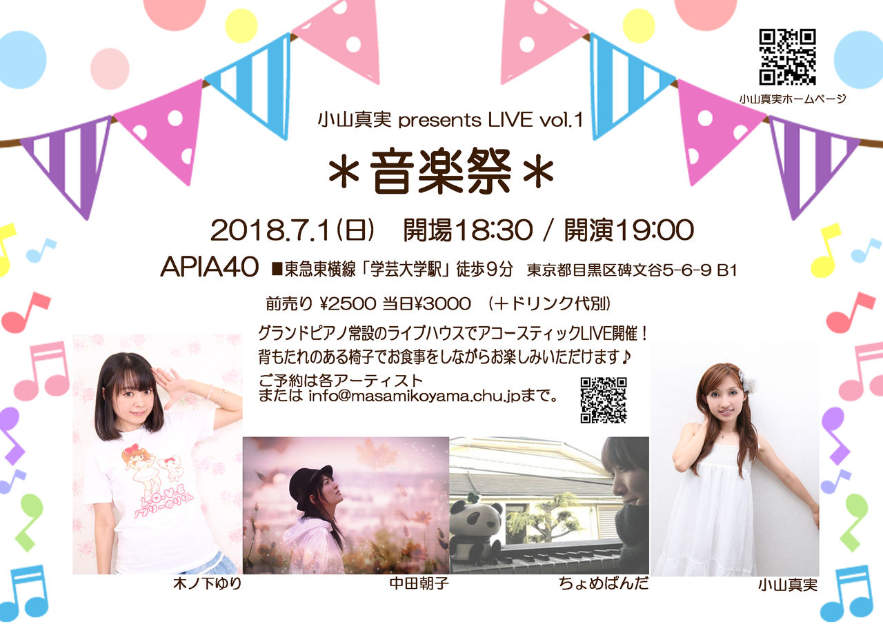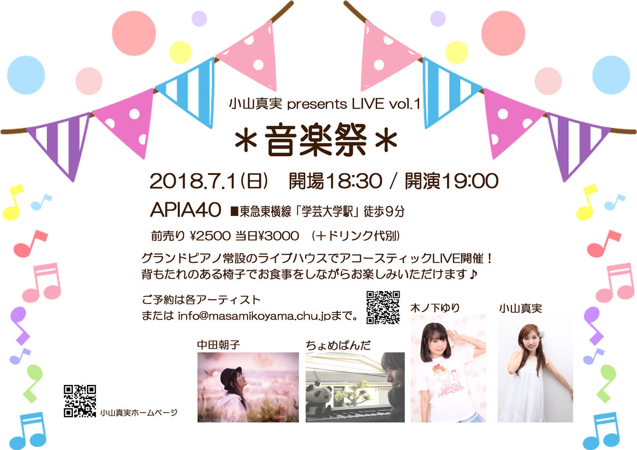 ◆だいやまーく9/23(日)『小山真実5thワンマンLIVE *BIRTHDAY LIVE 2018*』@APIA40 (学芸大学)