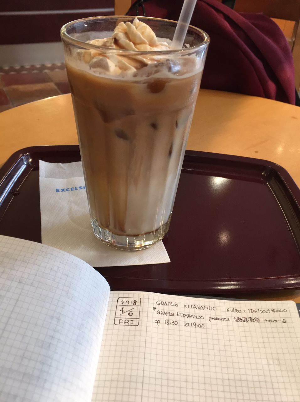 もっと日本の事が勉強出来るように色々な地域で歌いたいと思いつつ、カフェで今年から始めたLIVEノート書いてます。