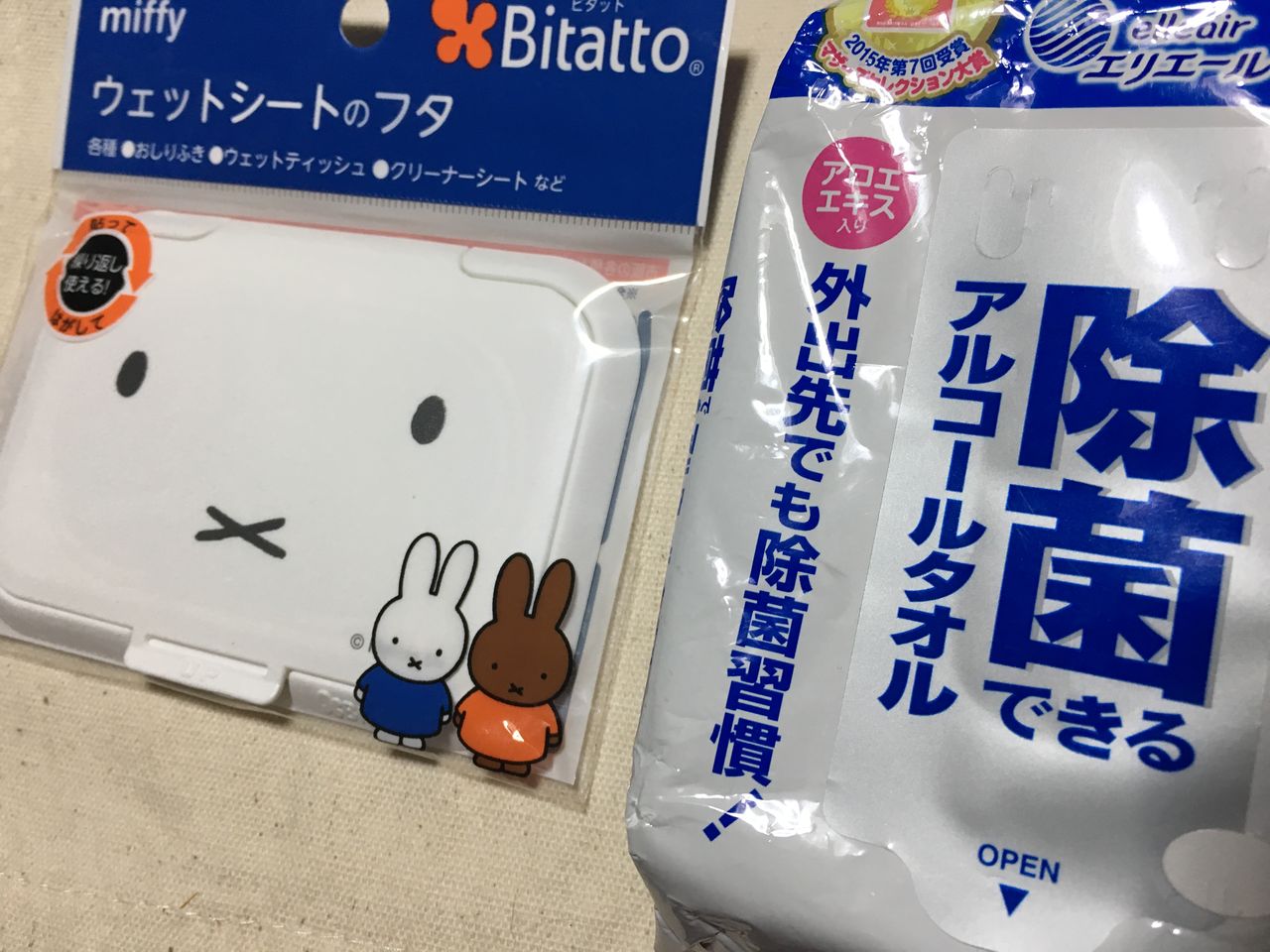可愛いから、という理由で使い始めたんですけど、ウエットティッシュは蓋が付いていた方が便利でした。