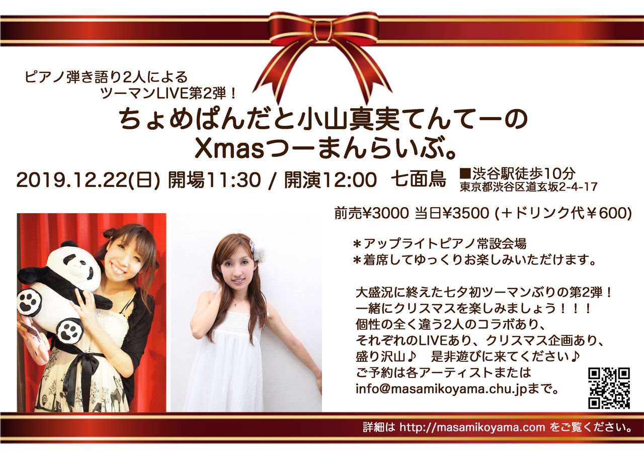 ◆だいやまーく12/22(日)昼『ちょめぱんだと小山真実てんてーのXmasつーまんらいぶ。』@七面鳥 (渋谷)