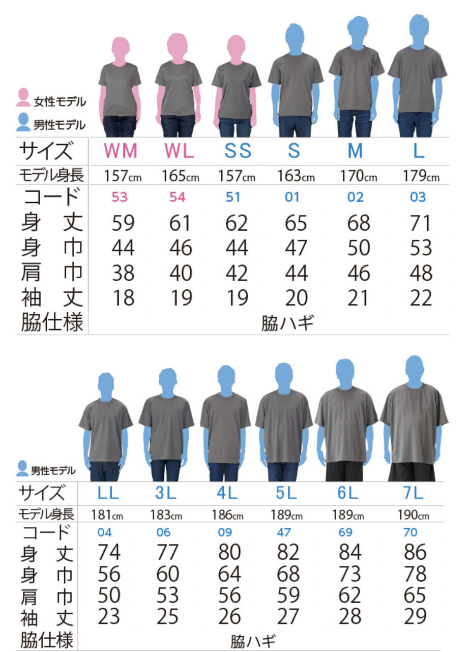 サイズも今なら女性モデルから男性の5Lまで選べます。