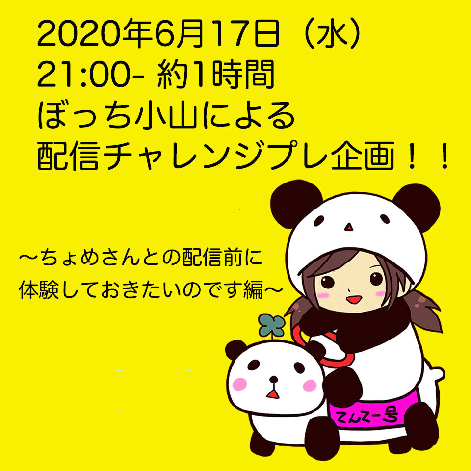 *6/21(日)に行うちょめぱんださんとのツイキャスのプレ配信です。
