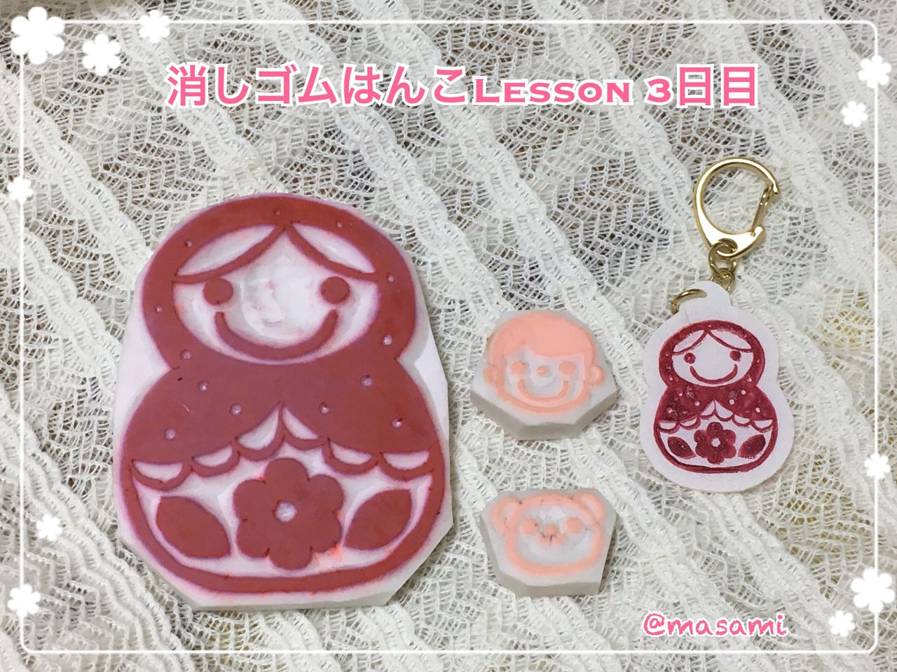 そして今回の作品は大きなマトリョーシカを彫って白のプラバンに押してキーホルダーを作りました