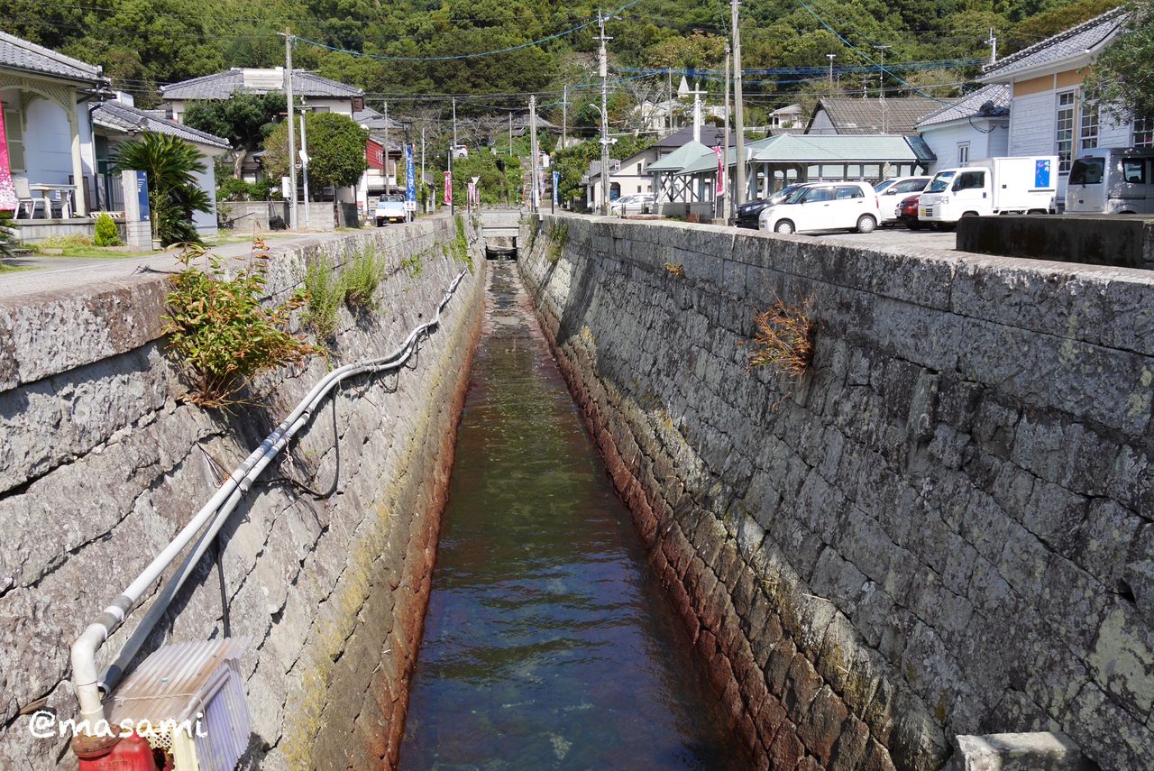 当時の石積みの埠頭、水路、西洋建築物がほぼ無傷で現存。