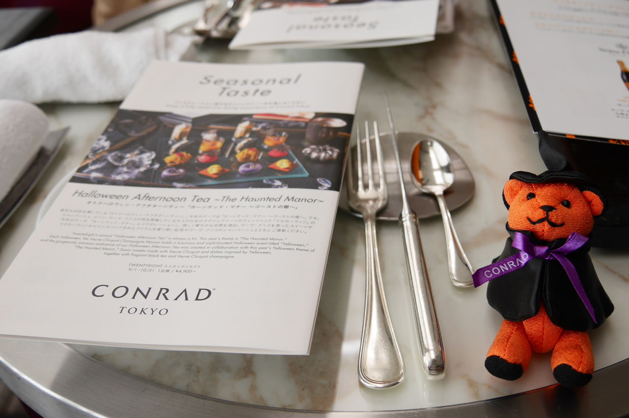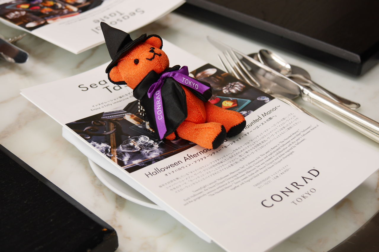 コンラッド東京のリボンのついたハロウィン熊さんが付くんです(●くろまる ?ω`●くろまる)