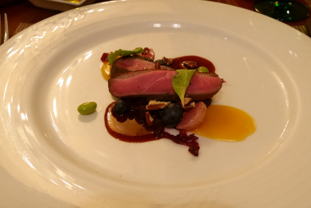 鴨むね肉のロースト 紫キャベツとリンゴのブレゼ