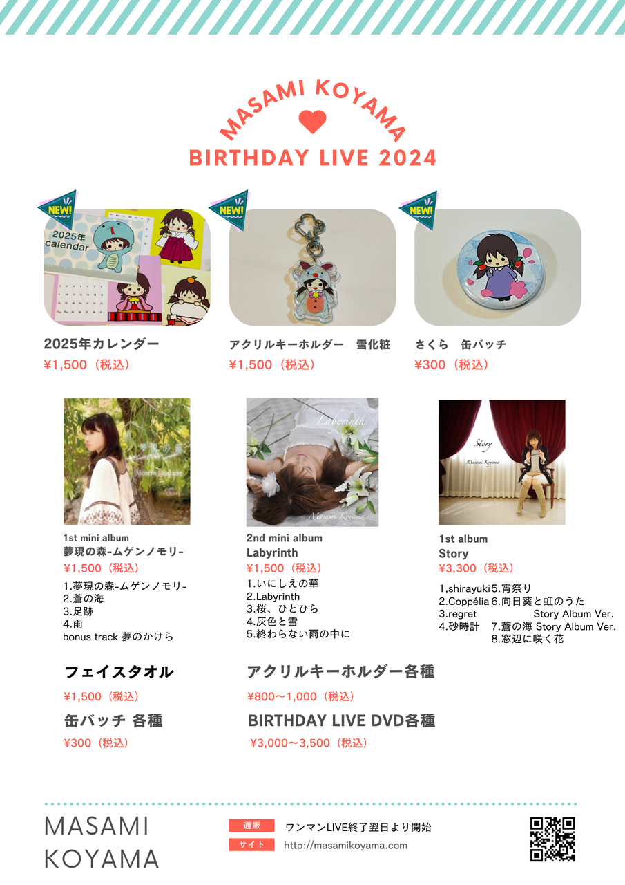 10.13 (日)誕生日ワンマン、アーカイブ本日23:59まで視聴できます! 2024年10月27日T06:08:12Z 2024年10月27日T15:08:04+09:00 tag:blog.livedoor.jp,2024:masami96.52250483 誕生日ワンマンからもう2週間。。。 ハロウィンももう直ぐですね。 誕生日ワンマンライブ、今年も配信をさせていただきましたが 視聴期限が本日23:59までになります。 2時間くらいなので今からチケットを購入していただいてもたっぷり観れます! すでにご購入くださった... 真実☆Music 2024ワンマンチラシ_配信用20241013