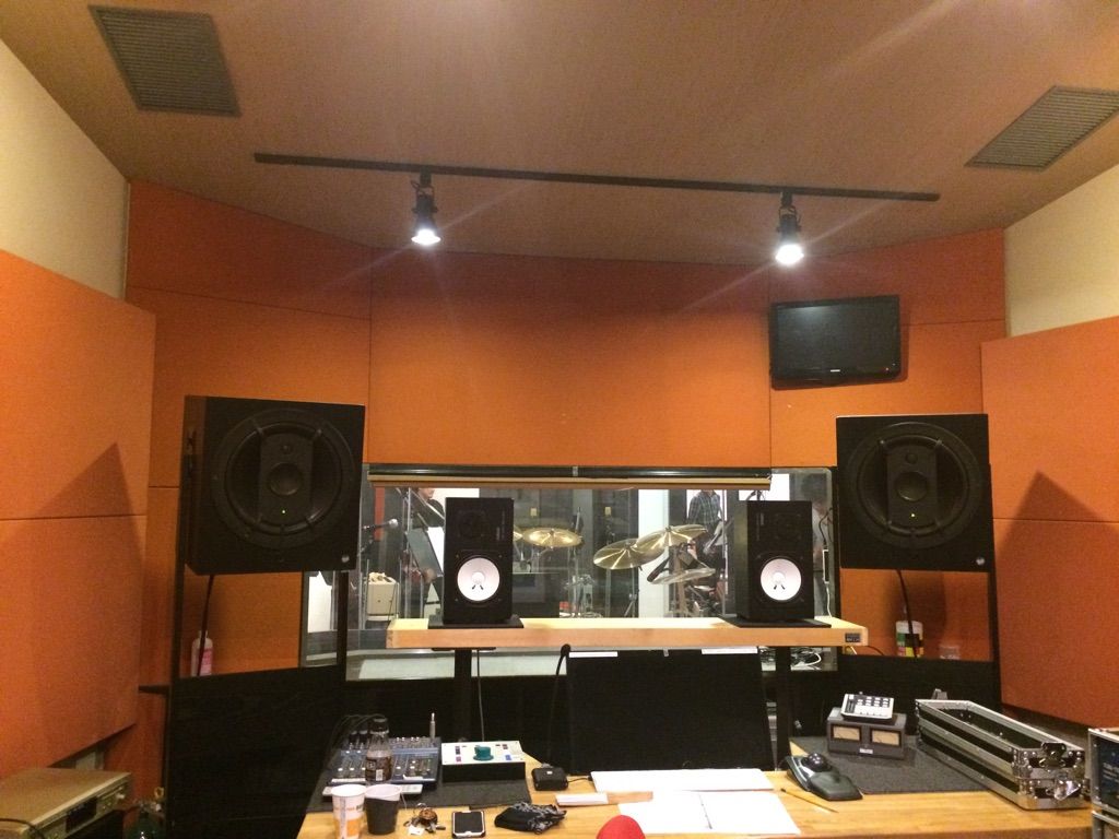 メンバーは元気になりそうなオレンジ色のスタジオの中で、黙々とレコーディングをしています。