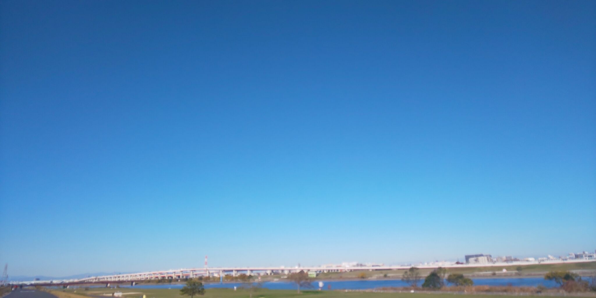 写真ではわかりづらいんですが、周りに建築物が何もない荒川の河川敷という事もあって、正に大パノラマと言わんばかりの青空でした。