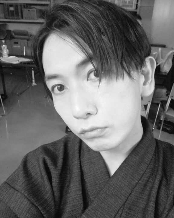 これは『喪服、緋色の。』の時の自撮り写真なんですけど、着物姿といい髪型といい、何処かの歌舞伎役者みたいだなぁと自画自賛。